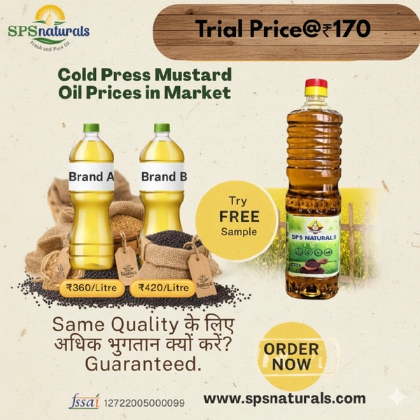 Hello & welcome to SPS Naturals 🌿 Experience the purity of traditionally extracted Wood Press Mustard Oil. For orders, free samples, or product queries, please message us. We will get back to you soon.